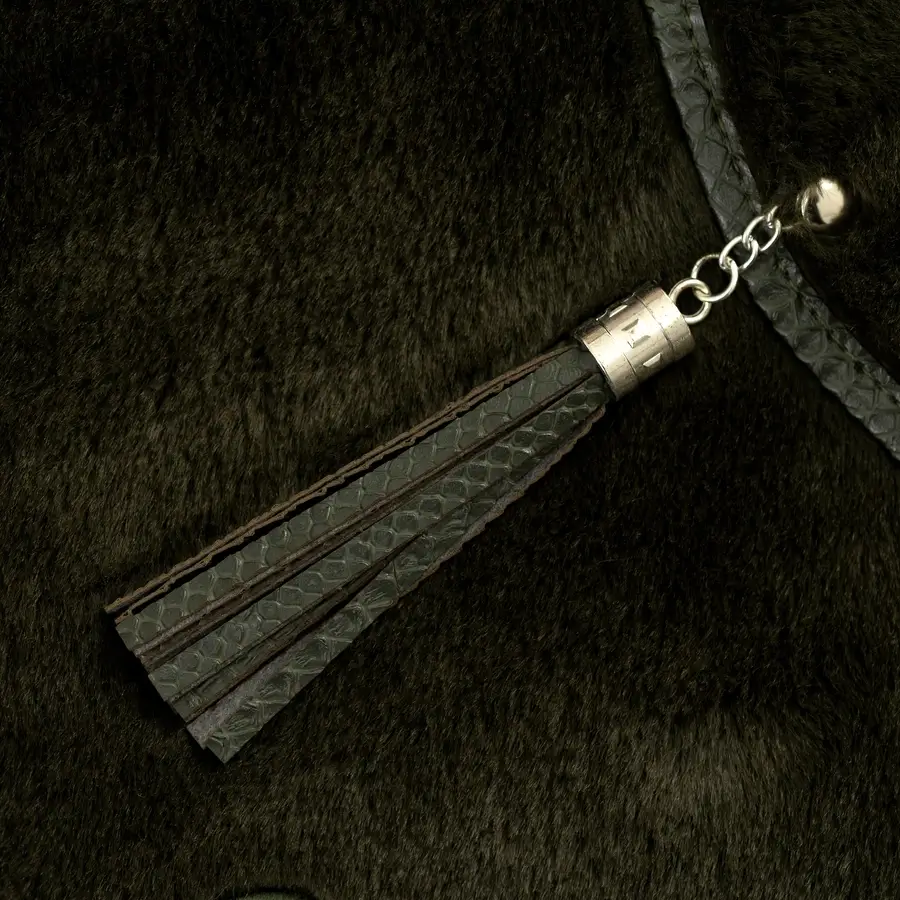 أخضر زيتوني فرو صناعي و جلد صناعي